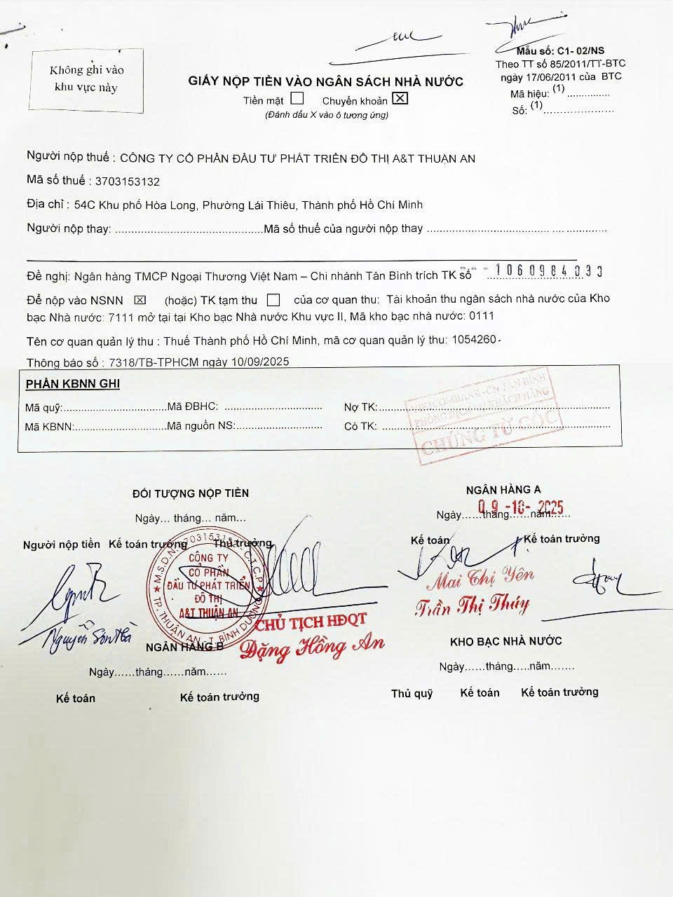 Thông tin chính thức từ chủ đầu tư Dự án AT Saigon Riverside xác nhận việc hoàn thành nghĩa vụ nộp thuế đầy đủ và đúng hạn theo quy định của pháp luật. Đây là một dấu mốc quan trọng, thể hiện trách nhiệm, uy tín và tiềm lực tài chính vững mạnh của chủ đầu tư. Việc này không chỉ củng cố niềm tin của khách hàng, mà còn góp phần tạo dựng một môi trường đầu tư minh bạch và an toàn.